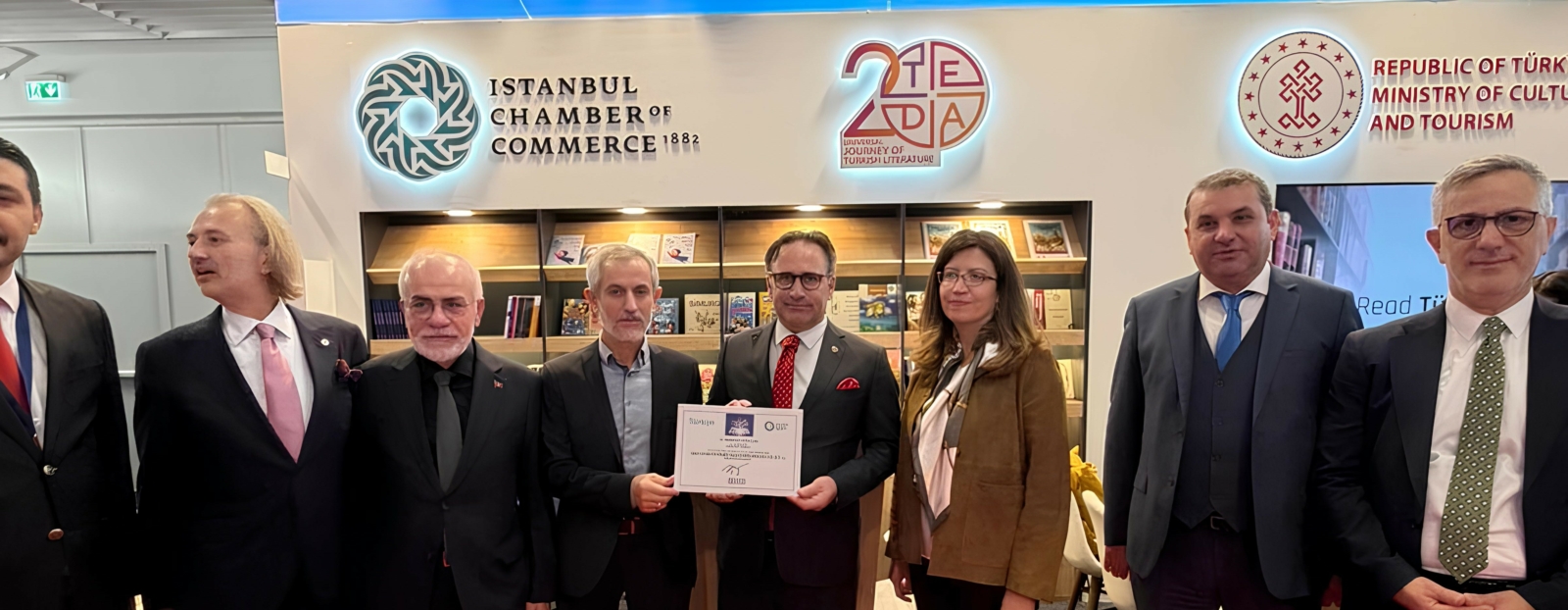 Kültür ve Turizm Bakanlığı ile İstanbul Ticaret Odası iş birliğiyle fuara katılan 10 yayınevine katılım belgeleri takdim edildi. Bu kapsamda, Nar Yayınları temsilcisi Tayfur Esen’e katılım belgesi, Türkiye adına Başkanımız Doç. Dr. Zeki Eraslan tarafından sunuldu.